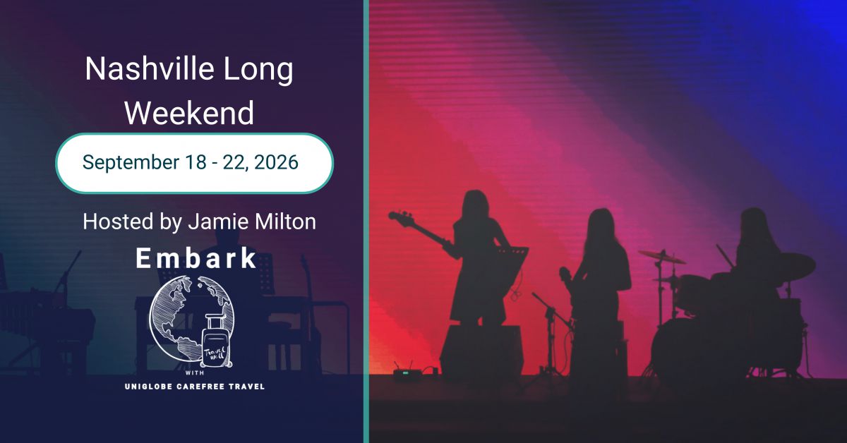 Pack your bags for a 4-night escape to Nashville hosted by Jamie Milton — where live music, Southern charm, and unforgettable experiences are waiting for you.