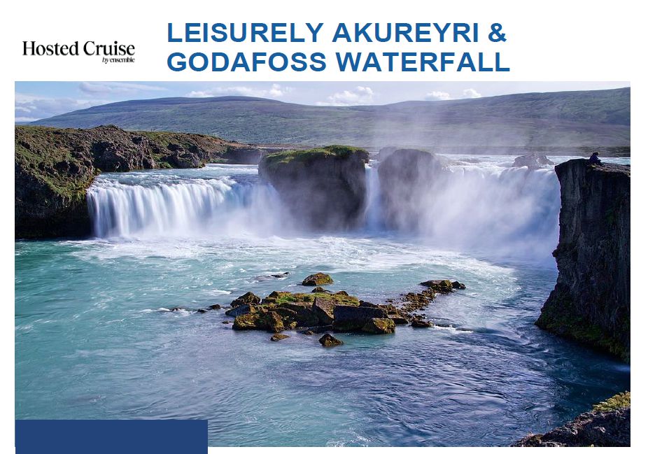 You’ll begin with a motor-coach ride along the scenic coastline of Eyjafjörður Fjord. After driving through lush and fertile farmlands, you’ll reach Goðafoss Waterfall, the “Waterfall of the Gods”. You’ll have a brief stop at this stunning and historically significant location.