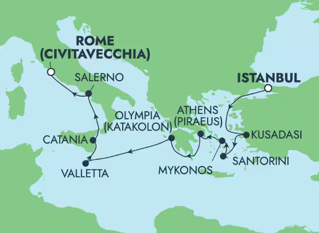 Embarkation & Disembarkation Port: Istanbul, Turkey; Rome (Civitavecchia), Italy