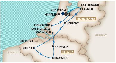 Day 1, AMSTERDAM – EMBARKATION. Board the ship in Amsterdam for your Best of Holland & Belgium cruise. (D)
