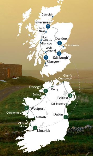 Rich landscapes, history and legends will surround you in these two glorious Celtic nations. From Dublin to Glasgow, the highlands to St Patrick this extensive tours offers you just the right balance of the past, the present and the people of Scotland & Ireland. Breakfast daily, outstanding dinners, and delightful hotels complete this first class tour.