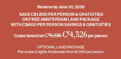 Day 8, AMSTERDAM. Disembark your ship and bid farewell to Amsterdam as you prepare for your return flight home. (B)