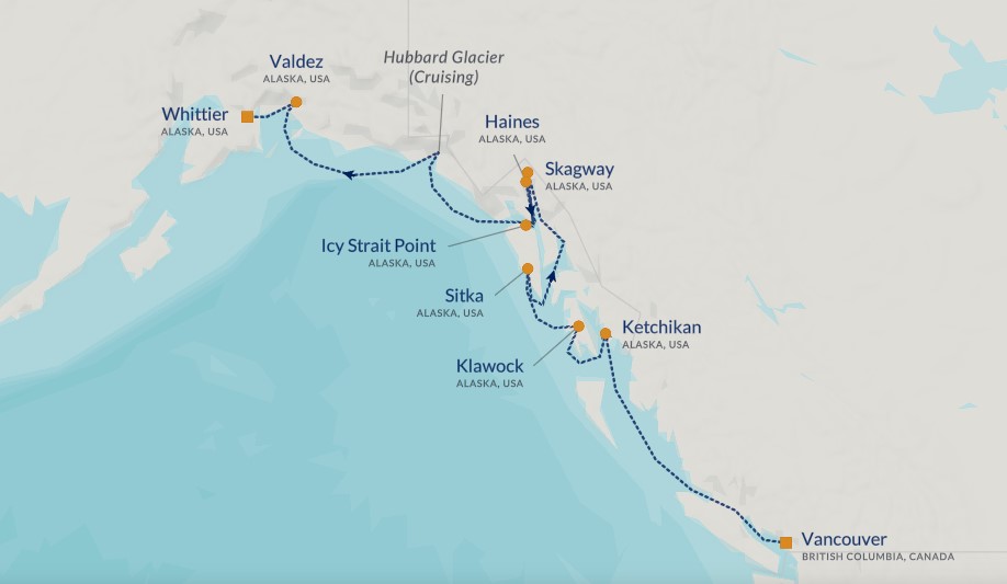 Departure / Arrival: Vancouver, British Columbia, Canada -> Whittier, Alaska, United States