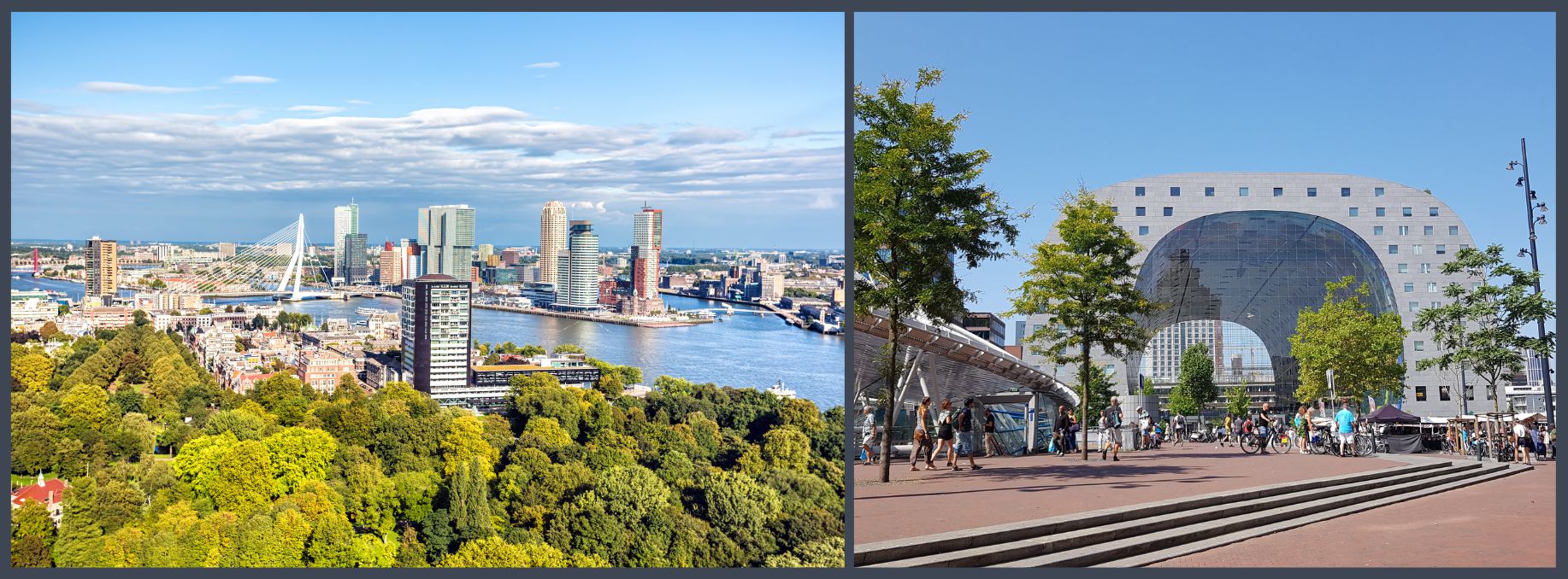 Take a unique Architecture Bike Tour to see the architectural highlights of Rotterdam. Do not miss the interesting Cube Houses, the popular Market Hall, the spectacular Erasmus Bridge, the vertical city ‘De Rotterdam,’ and the iconic Central Station. In the city center, admire how historic buildings lash cheerfully with hypermodern skyscrapers. OR: