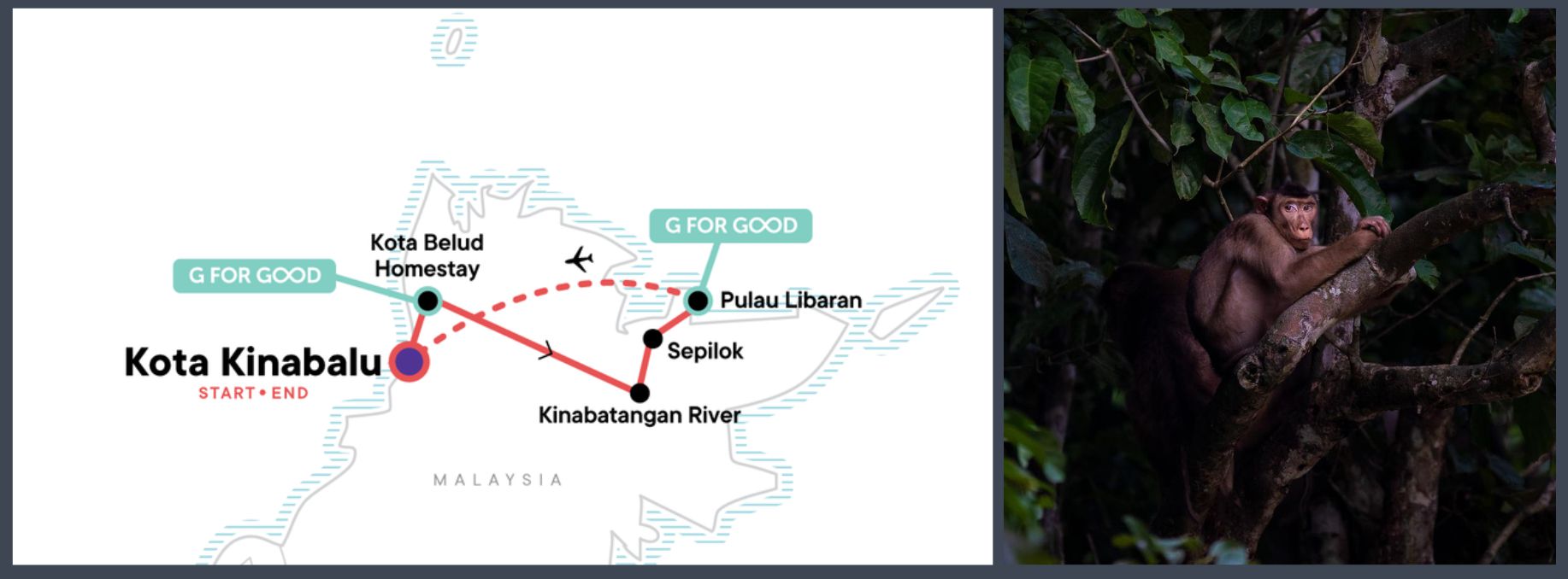 Between its intriguing wildlife, skyscraper-height jungle canopies, and gorgeous coastlines teeming with tropical fish, this magical stretch of Borneo is positively bursting with stuff to see and do. This eight-day adventure promises to keep you busy; time spent marvelling at nature’s glory on Libaran Island, close encounters with orangutans at a rehabilitation centre, prowling the streets of Kota Kinabalu by night, and otherworldly wonders in the jungle. Borneo has it all, and in east Sabah, it’s all close at hand.