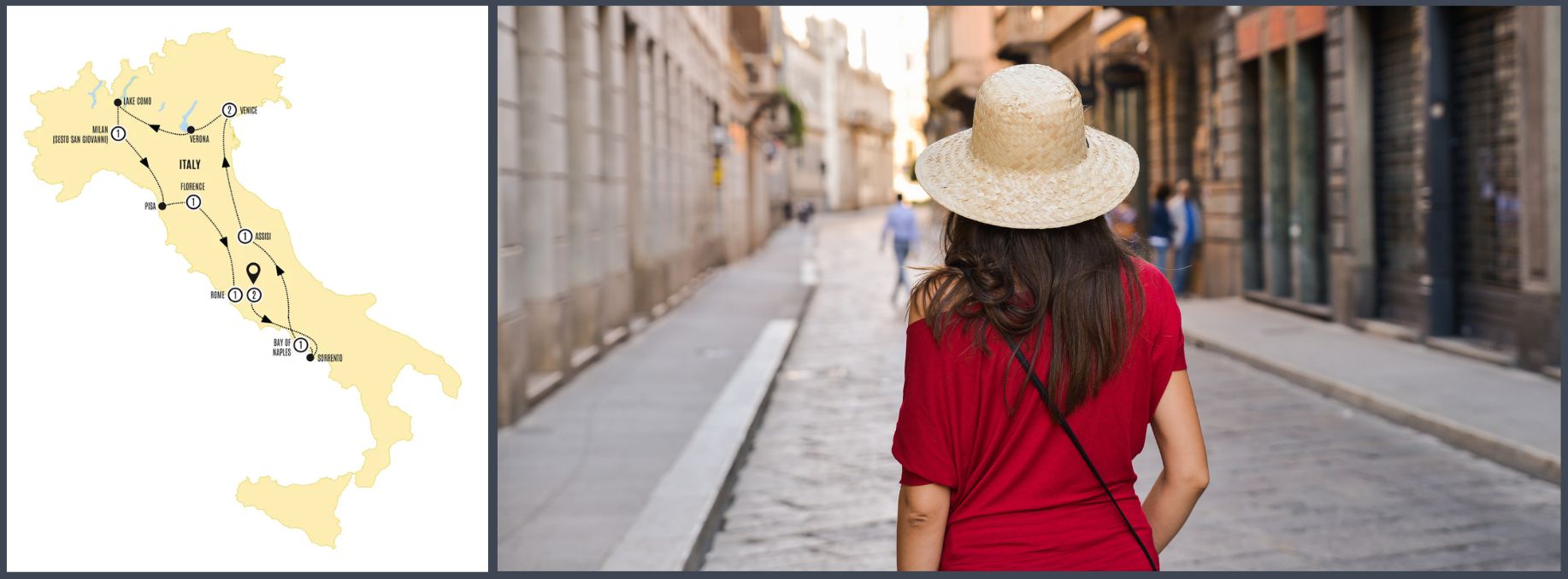 Unveil Italy's timeless charm on this 10-day Italy tour through its most iconic destinations. Feel the vibrant pulse of Florence, Venice, and Rome, relax by the serene Italian Lakes, and soak in the citrusy allure of Sorrento. Wander the romantic streets of Verona, honor St. Francis in Assisi, and capture your moment at Pisa’s Leaning Tower.